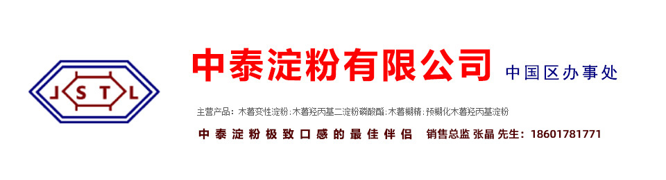 中泰淀粉有限公司在泰國具有穩定可靠品質優良的木薯原料基地。公司具備先進尖端設備及生化科技,生產各種食用木薯醚化(羥丙基)變性淀粉,糯米粉,預糊化淀粉及糊精。為消費大眾創造最安全,穩定,衛生,便利,耐凍的產品。業務行銷歐美,中國,中東,日本,韓國及東南亞等世界各國之食品業及工業界,質量穩定。中泰淀粉有限公司以創新,誠信,利潤分享的經營理念,來服務顧客及社會大眾,讓大家享受健康,愉快,和諧的生活。 上海宗泰實業有限公司是中泰淀粉有限公司在中國唯一的子公司,負責中泰淀粉有限公司在中國的所有事務,希望在變性淀粉領域和大家一起努力,共創未來。 聯絡人: 銷售總監 張晶 先生 18601781771 Email: 175440677@qq.com